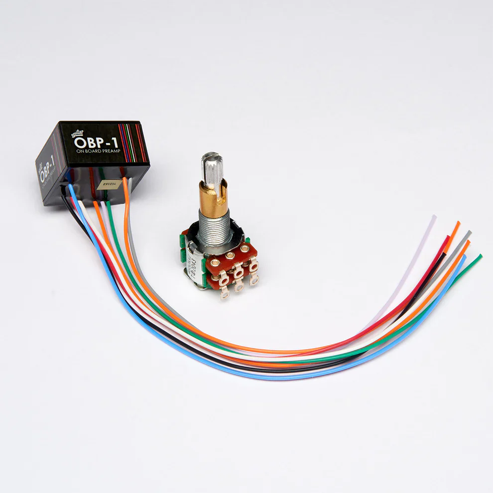 The OBP-1 SK is a two-band boost-only bass and treble preamp, that has high headroom, low distortion and the ability to reproduce the full dynamic range of your instrument. The OBP-1 gives you the tone shaping benefits of active electronics without losing the inherent sound of your instrument. OBP-1 SK kit includes stacked Treble/Bass pot. The OBP-1's discrete, all-FET circuitry features up to 18dB of boost at 40Hz and 4kHz, creating a sonic environment high in dynamic headroom and low in noise.